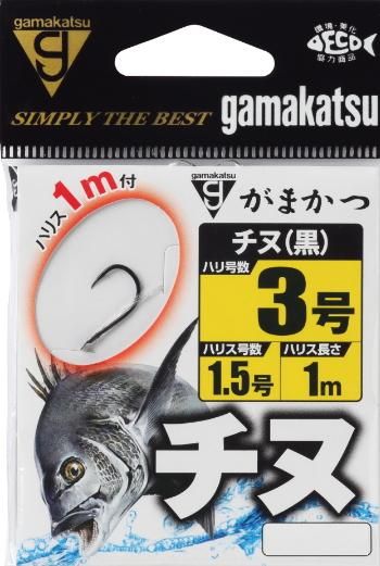 がまかつ チヌ (黒) 糸付 1m (輪巻) (ハリ2号 ハリス1.5号) / クロダイ チヌバリ 鈎 針 仕掛け 【釣具】 (メール便発送可) 【本店特別価格】