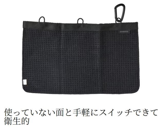 生地は汚れやすい釣り場で使用することを想定してマイクロファイバー素材を採用。吸水率が高く、油汚れもしっかり拭き取れます。速乾性も高く、濡れやすい水場での使用に適しています。