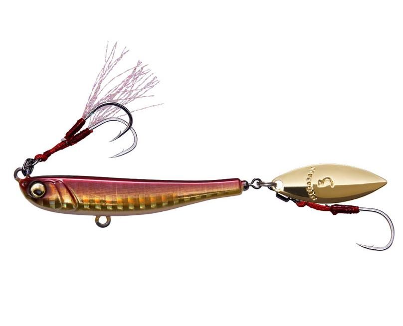 マキッパはその名の通り、投げて巻くだけの新感覚キャスティング・ブレードジグ。ソルトウォーターシーンにおいて、キャスティングジグは飛距離性能と多様な魚種に有効なことから定番のルアーとなっていますが、思い描いたアクションを出すのが難しかったり、狙ったレンジをキープしづらかったりと、使うには慣れや経験が必要なルアーといえます。マキッパは、キャスティングジグの使いにくさをカバーし、誰もが簡単に扱えるよう、徹底チューンを施しました。テールには巻くだけで集魚効果の高いブレードを装着し、さらにブレードの回転を阻害せずにブレードバイトを高確率でフックアップ可能な、ブレードフックシステム(PAT.)を搭載。計算されたボディバランスと各パーツの配置により、ボディが回転することなく安定したスイミング&フラッシングでターゲットを誘います。