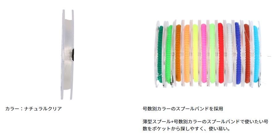 使いやすさの面では、収納効率がUPする「薄型スプール」仕様、0.6号〜6号までの様々な状況に対応出来る全12アイテム、号数別カラーのスプールバンド、スタンダードなナチュラルカラーで多様なフィールドに対応可能な仕様となっている。
