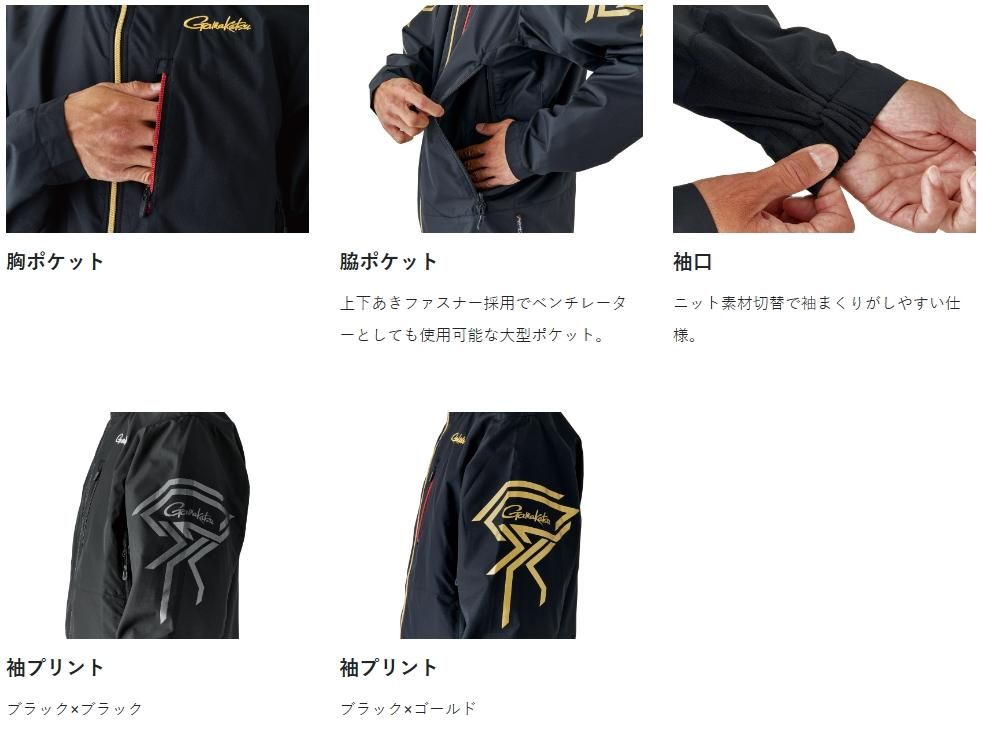 がまかつ ウィンドブレーカー GM-3721 ブラック×ゴールド Lサイズ 【gamakatsu】 (送料無料) 【本店特別価格】