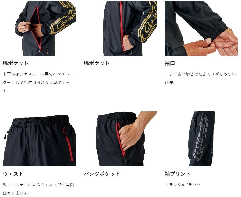 がまかつ ウィンドブレーカースーツ GM-3722 ブラック×ゴールド Mサイズ / gamakatsu (送料無料) 【本店特別価格】