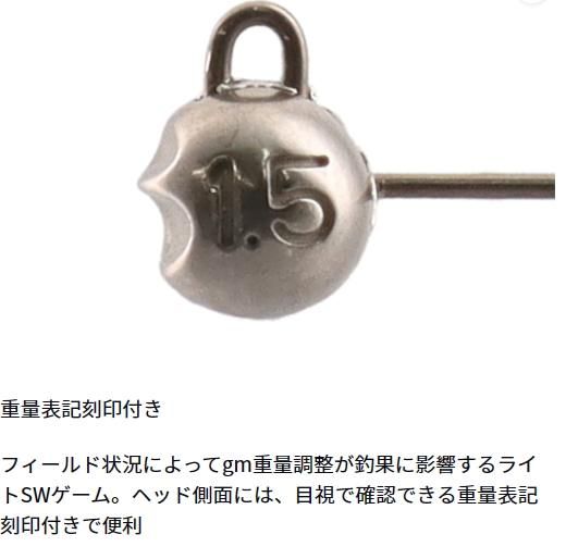 ヘッドは、比重18 ぶっ飛び!のタングステン合金、安定フォールとスイミング姿勢を実現する低重心ラウンド形状、そしてレンジキープしやすい潮受けカップの仕様となっている。