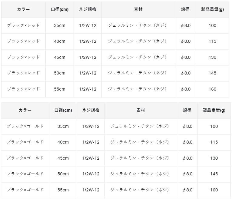 ●線径φ8mmの中空により、チタンに匹敵する強さと軽さを併せ持っています。