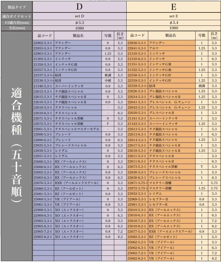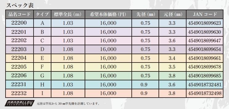 A〜Iタイプまで9種類をラインナップしていますので、穂先折れで眠っている名竿を蘇らせることができます。
