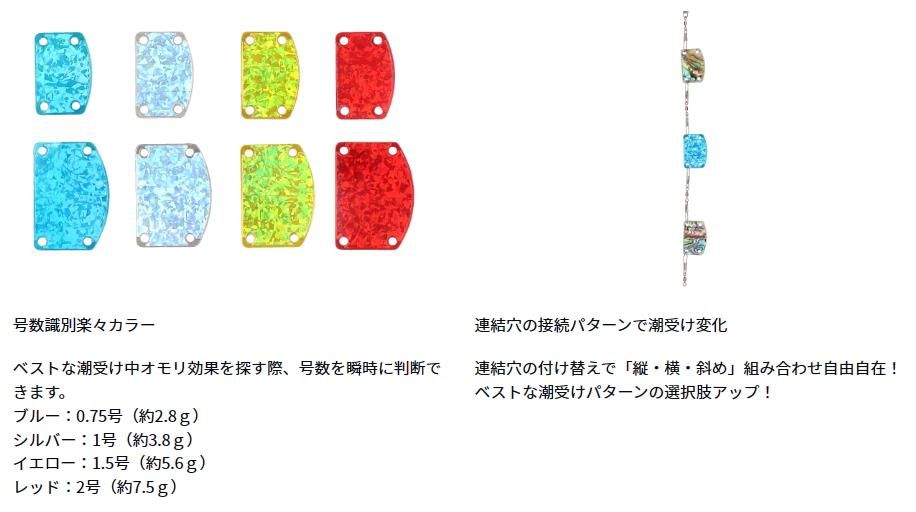 スナップ式連結システムだから、水深や潮速に合わせて枚数・号数の組み合わせ、また喰わせパターンの選択肢がアップ!