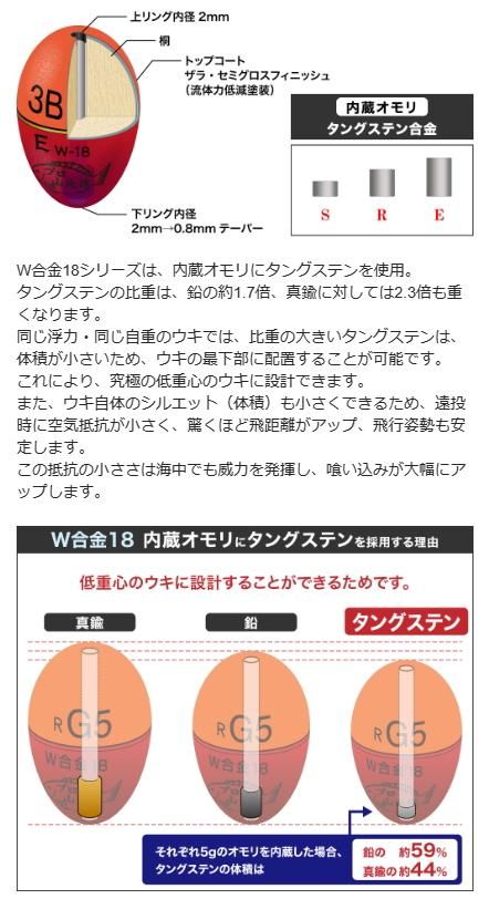 W合金18シリーズは、内蔵オモリにタングステンを使用。