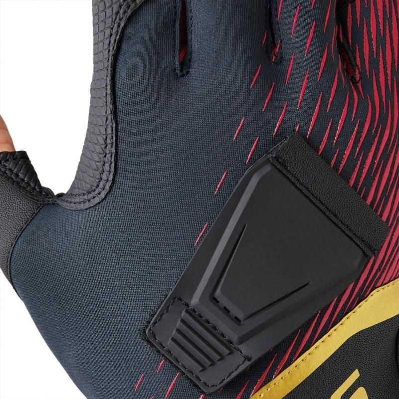 手の甲に防風性のある生地を採用した磯用グローブです。ハリスを滑らせ針を掴む動作を想定してレザーの配置を見直し、さらに針を収納できるマグネットホルダーを搭載させました。操作性を重視するアングラーにおすすめの5本指抜きタイプです。