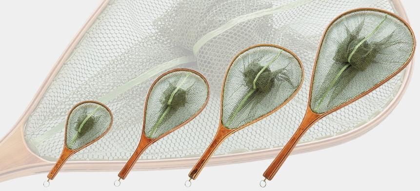 クレナモ素材は写真映えするだけでなく魚をネットインする際の負荷(水流の抵抗)も軽く、そのうえ丈夫で長持ちしますが、一方では魚のヒレを傷つけやすい素材でもあります。「ハンドメイドリリースネット」は、従来のハンドメイドランディングネット同様の木目の美しい天然木を踏襲しながら、ネット素材をクレナモからラバーコーティングに変更。「魚への配慮とネットインの負荷軽減」と同時に「写真映え」も両立しました。渓流に映える特注のオリーブカラーを採用。