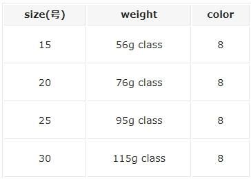 ハードコート仕上げのボディで耐久性UP!フグ・サゴシなどの噛み魚の猛攻にもシッカリと耐えます。ハード仕様で水切れが良くキレのあるアクションでイカを誘います。トーピーヘッドで素早いフォールスピードを実現しました。