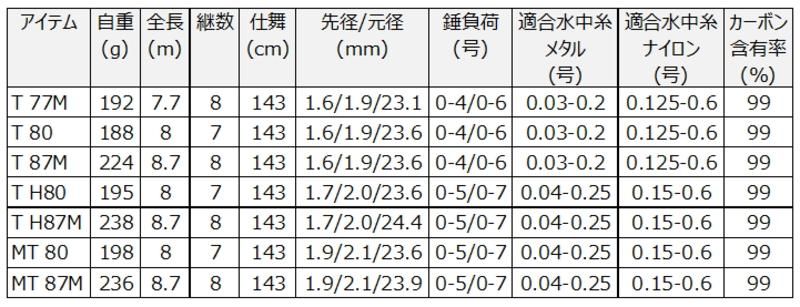 石の大きい小河川に最適な先調子の「T」に、小石底でフラットな河川や風対策に最適な胴調子の「MT」を取り揃え、また長短自在の70cmマルチも採用。