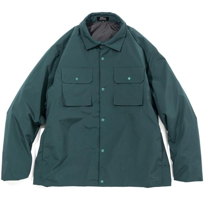 ・リサイクルポリエステルとソロテックス混紡の撥水素材に、化繊中綿を封入したシャツ型アウター。