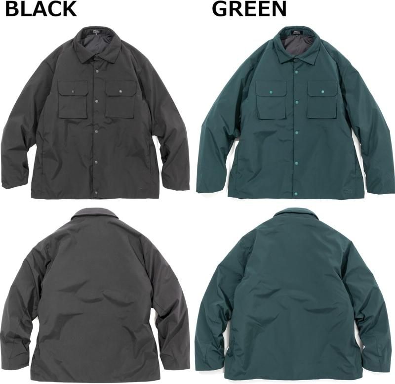 ・リサイクルポリエステルとソロテックス混紡の撥水素材に、化繊中綿を封入したシャツ型アウター。