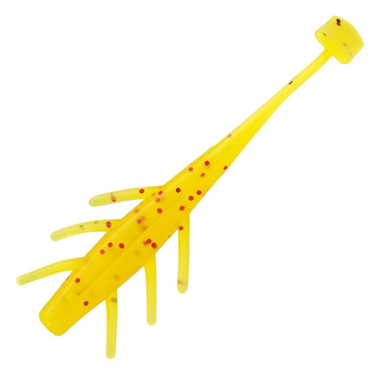 甲殻類の足と小魚の尻尾を合わせ持った独特の形状はワーム自身に大きな動きを狙うのではなく、「細かく」「優しく」そして「反応良く」をテーマに開発。独特な形状を採用したテールは、ノーシンカーのフォール時でさえもブルブルと弱く震え、一方で強い動きに反応する状況にも対応できるように、付け根にカットポイントを装備。この部分をカットするとテールが一転して暴れやすくなり、ハイアピールが可能に。そして、もう1つの大きな特徴である3本の手(足?)は強く動かし震えさせることで、まるで逃げる甲殻類を演出。なおヘビキャロを主軸に開発したもののスプリットショットはもちろんライトテキサスやジグヘッド、ダウンショットなど様々なリグに対応可能。陸っぱりアングラーに新しいワームを提案します。