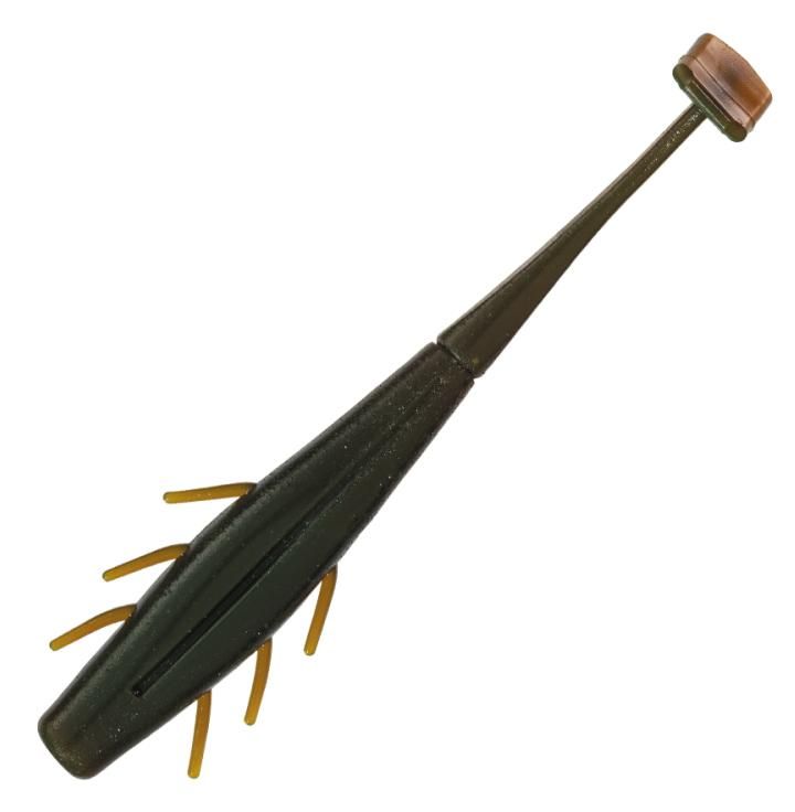 エビシャッド 3’、4’の「細やかな動きで違和感少なく魚に食われる」というキモの部分を、デカいボディサイズに合わせて調整。スイミングやタダ巻きにも多様されるサイズなので、その用途も十分に考慮。デカい存在感と従来譲りのスクエアテールの独特の水絡み&水押しによる「パワーアピール」を持ちつつ、サイズダウンした3本の手(足?)の細やかな生命感の「食われる」力で、「強く」そして【食われる】スイミングシャッドテールワームが完成しました。