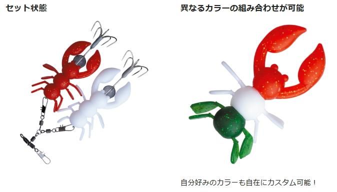 様々なカラーをアングラー自身で組み合わせて使える新感覚のタコエギワーム【蛸家 玉三郎】。3段に分かれたボディを切り離し、異なるカラーを組み合わせることで、その日の当たりカラーへ柔軟に対応していきます。ソフトマテリアル採用で、抱いたタコが違和感を感じ辛く、視覚・触覚に優れたタコを魅了します。カンナセンター部に付いたシンカーはエギの姿勢を安定させると同時にハンガサ仕様のカンナを根掛かりしづらくしてくれます。特徴的な5本鈎はタコをより深くフッキングし、バラシを軽減します。