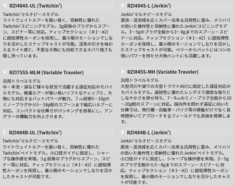 ・RZI96HH、RZI106HHのみリールシートはFuji(R)DPSを使用。