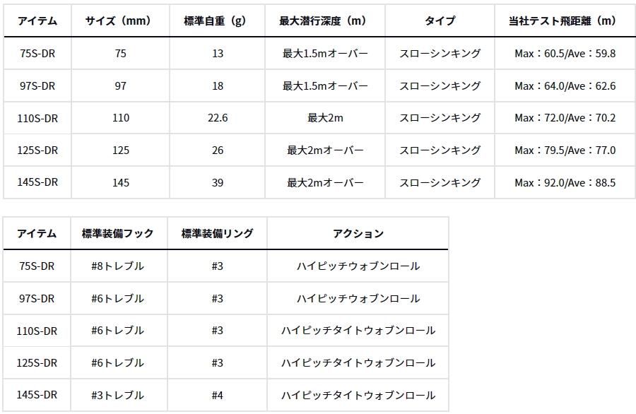 キャスタビリティ・レンジキープ性能を追求したスローシンキング設定ながら、多用するスロー〜ミディアムでのレスポンスを徹底追求。小沼の卓越した経験とフィールドテストを繰り返した末にたどり着いた、こだわりの「釣れるハイピッチタイトウォブンロールアクション」が持ち味。「タダ巻きのスローリトリーブ」でもしっかりした引き心地と強烈なフラッシング&波動を発生。また、流れの変化で自動的に生まれるイレギュラースライドアクションが食わせの間を与え、特別なロッドアクションの入力は不要。