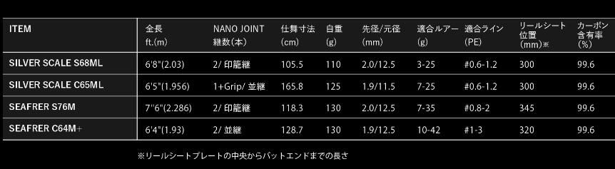 GRANDAGE NAVAL SILVER SCALE(シルバースケール)シリーズは、特にボートからのシーバスゲームに特化したシリーズである。オカッパリと違いボートでのシーバスゲームがイージーだったのは昔の話。近年では時合いはもとより、正確なキャスト技術が釣果を決定的に左右する。ではロッドは高弾性に向かっていくのか?と言われれば、それも違う。足元が不安定なボートゲームでは、ロッドの吸収力がフックアウトを防ぐ大きな要因となる。シルバースケールのブランクは過去に類を見ない素材構成で成り立っているが、これがボートゲーム新時代の指針となるだろう。