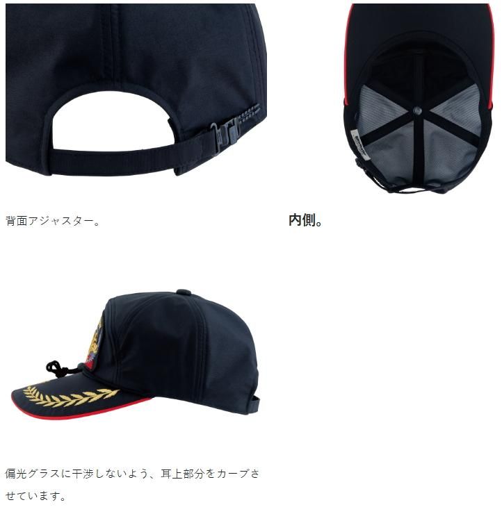 ● 釣りに欠かせない偏光グラスに干渉しないよう、耳上部分をカーブさせるとともに、広めのつばで日光を遮蔽します。
