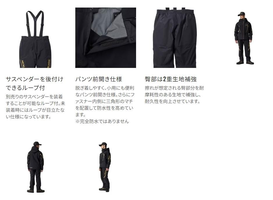 磯釣りの動きを分析し動きやすさを追求した立体パターン設計、フローティングベストとジョイントするコンビネーションシステム、擦れやすい臀部は耐摩耗性のある生地で2重補強するなど、磯専用モデル要素を盛り込んだスーツです。