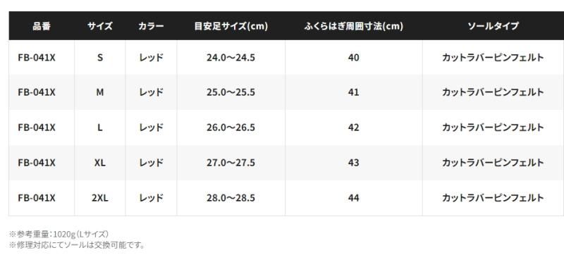 シマノ ジップアップブーツ カットラバーピンフェルト FB-041X レッド 2XLサイズ (28.0〜28.5cm) / shimano 釣具 (送料無料) 【本店特別価格】