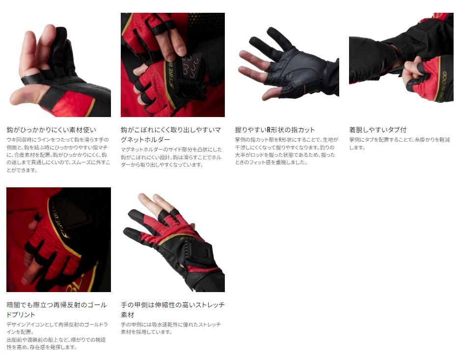 厳しい磯場で釣りに集中できるよう、鈎をつかむ、交換する、ロッドやヒシャクを振る、一連の流れでの使いやすさにこだわったリミテッドプログローブ。吸水速乾ストレッチ生地を甲側に配置することで、暑い時期から肌寒い秋まで幅広いシーズンに対応しています。