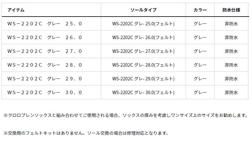 ダイワ ウェーディングシューズ WS-2202C (フェルト) グレー 25.0cm (送料無料) 【daiwa】 【釣具】 【本店特別価格】