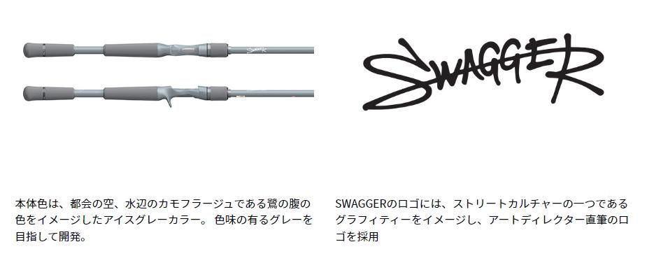バスフィッシングの実釣性能を追求し、アングラーの技量でリカバー出来ない部分をロッドが仕事をする「釣れるロッド」デザインとSWAGなデザインを融合し、アングラーを高揚させるロッド、それがSWAGGER。