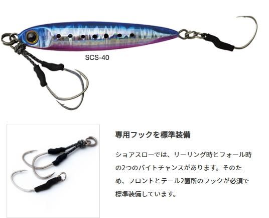 多彩な魚種に効果的なスロージギングを、ショアスタイルと融合することで生まれたショアスロー。ピッチを刻み、的確にレンジを攻略することにより、幅広いターゲットを狙うことが可能になります。通常のショアジギングでは一瞬で通過してしまうバイトレンジを、徹底して攻めることができるショアジギングの新しい形。これこそがショアスローの強みであり、面白さです。回遊魚はもとより、フラットフィッシュ、ロックフィッシュなど、多くの魚がターゲットになります。ウエイトバランスの異なるスリムとワイドを使い分けて攻略の幅を広げます。