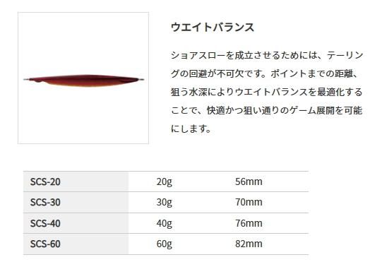 多彩な魚種に効果的なスロージギングを、ショアスタイルと融合することで生まれたショアスロー。ピッチを刻み、的確にレンジを攻略することにより、幅広いターゲットを狙うことが可能になります。通常のショアジギングでは一瞬で通過してしまうバイトレンジを、徹底して攻めることができるショアジギングの新しい形。これこそがショアスローの強みであり、面白さです。回遊魚はもとより、フラットフィッシュ、ロックフィッシュなど、多くの魚がターゲットになります。ウエイトバランスの異なるスリムとワイドを使い分けて攻略の幅を広げます。