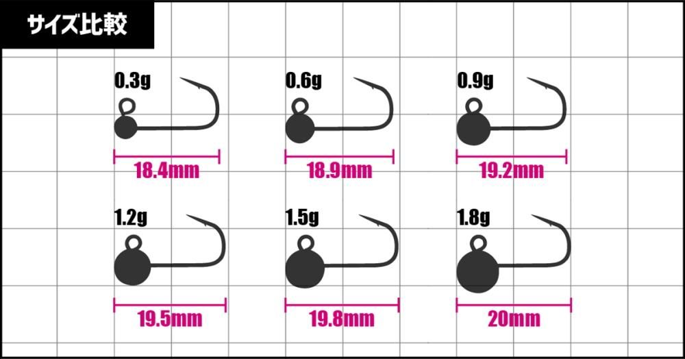 ミクスチャー スタンダードヘッドは、アングラーの意図したタイミングでしっかりとフッキングがキマるライトゲームジグヘッドです。オープンに開いた針先は、フッキングの入力があったタイミングで深く刺さるようセッティング。フッキング位置で魚の状況を把握できるなど、ライトゲームが楽しくなるジグヘッド、それがミクスチャー スタンダードヘッドです。