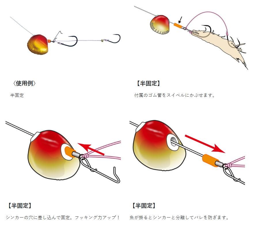 桜幻デルタシンカーと遊動式フックセットを組み合わせた遊動式鯛テンヤのコンプリートキット。付属のゴムチューブとビーズを使い分けて、半固定、完全遊動共に対応可能。フックには桜幻鯛テンヤ孫鈎として評価の高いフッキングマスターを使用。ラインは強度と適度なハリが絶妙なバランスの桜幻カスタムフックリーダー8号を使用し、活きエビだけでなく、冷凍エビにも対応。ワンタッチエビキーパーminiでエビを親バリにがっちりホールド。