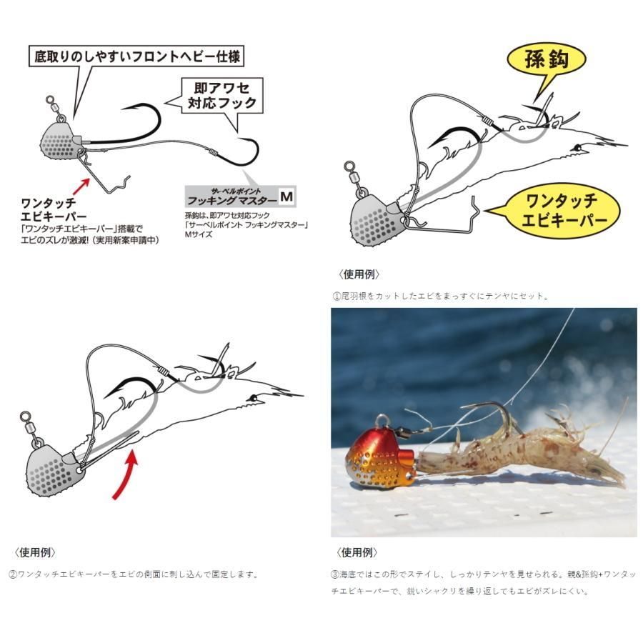 さらに、エビをしっかり固定でき、素早く脱着可能な「ワンタッチエビキーパー」の採用によりエビのズレを防止することで手返しの良い釣りを展開できます。