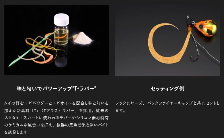 硬度や厚さをこの形状専用に見直し、フックとの絡みを軽減するように設定。さらなる釣果UPに貢献します。