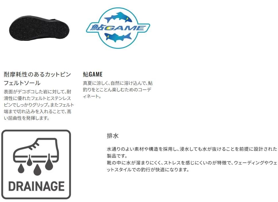 商品情報 シマノ SHIMANO 鮎GAME ウェットシューズ カットピンフェルト 中丸 FS-04YX / 釣り フィッシング シューズ 靴 ウェア 鮎シューズ