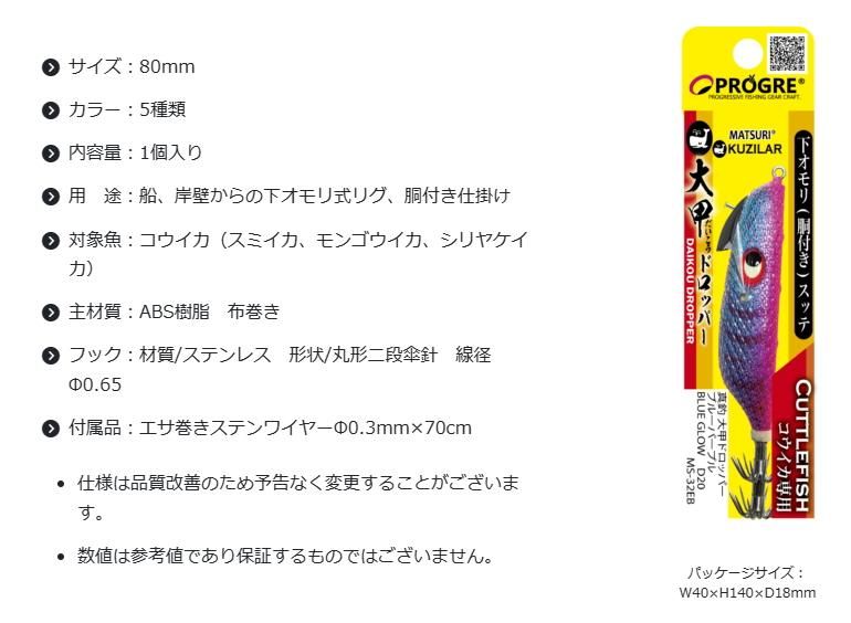 商品情報 プログレ PROGRE 真釣 クジラ― 大甲ドロッパー MATSURI KUZILAR DAIKOU-DROPPER