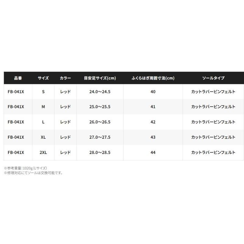 シマノ FB-041X ジップアップブーツ カットラバーピンフェルト レッド Sサイズ / shimano 釣具 【送料無料】 【本店特別価格】
