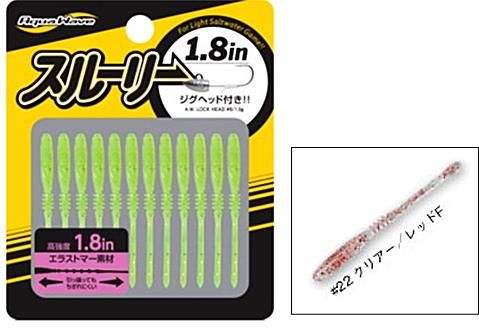 ジグヘッドを「スルリ」と簡単セッティング!ジグヘッドをまっすぐにセットしやすい「硬さ」、そして生々しいアクション&高フッキング率に直結する「柔らかさ」。2つの相反する条件を、ハリのあるエラストマー素材と独自のボディデザインによって融合させました。太めに設計されたフックパートはフックを刺す際につぶれにくく、ボディ中心を貫く下穴を利用してスムーズにセットすることが可能です。反面、スリムに設計されたアピールパートは微細な水流にも反応し、アジの弱々しい吸い込みバイトでも口中に簡単に吸い込まれます。使いやすさと釣れやすさを詰め込んだシンプルデザインワーム、それが「スルーリー」です。