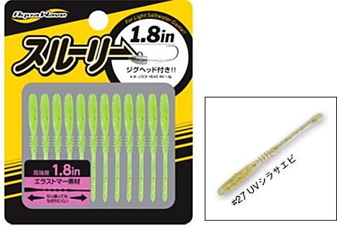 ジグヘッドを「スルリ」と簡単セッティング!ジグヘッドをまっすぐにセットしやすい「硬さ」、そして生々しいアクション&高フッキング率に直結する「柔らかさ」。2つの相反する条件を、ハリのあるエラストマー素材と独自のボディデザインによって融合させました。太めに設計されたフックパートはフックを刺す際につぶれにくく、ボディ中心を貫く下穴を利用してスムーズにセットすることが可能です。反面、スリムに設計されたアピールパートは微細な水流にも反応し、アジの弱々しい吸い込みバイトでも口中に簡単に吸い込まれます。使いやすさと釣れやすさを詰め込んだシンプルデザインワーム、それが「スルーリー」です。
