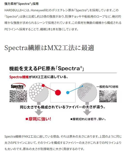 ピットブルと並ぶPEの新シリーズです。PE素材にHoneywell社のSpectra®を採用。8本編をMX2工法で仕上げ、耐摩耗性の向上と適度な“ハリ/コシ”を可能にしました。スピニングリールだけでなく、ベイトリールでも使いやすいPEラインです。