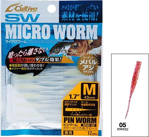 オーナー カルティバ ピンワーム MW-02 Mサイズ 1.7インチ #05 キラキラエビ / アジ メバル ワーム 釣具 メール便可 【本店特別価格】