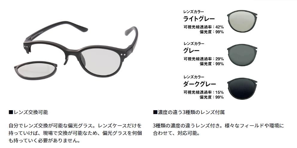 天候やフィールドに合わせて、自分でレンズ交換可能な偏光グラス