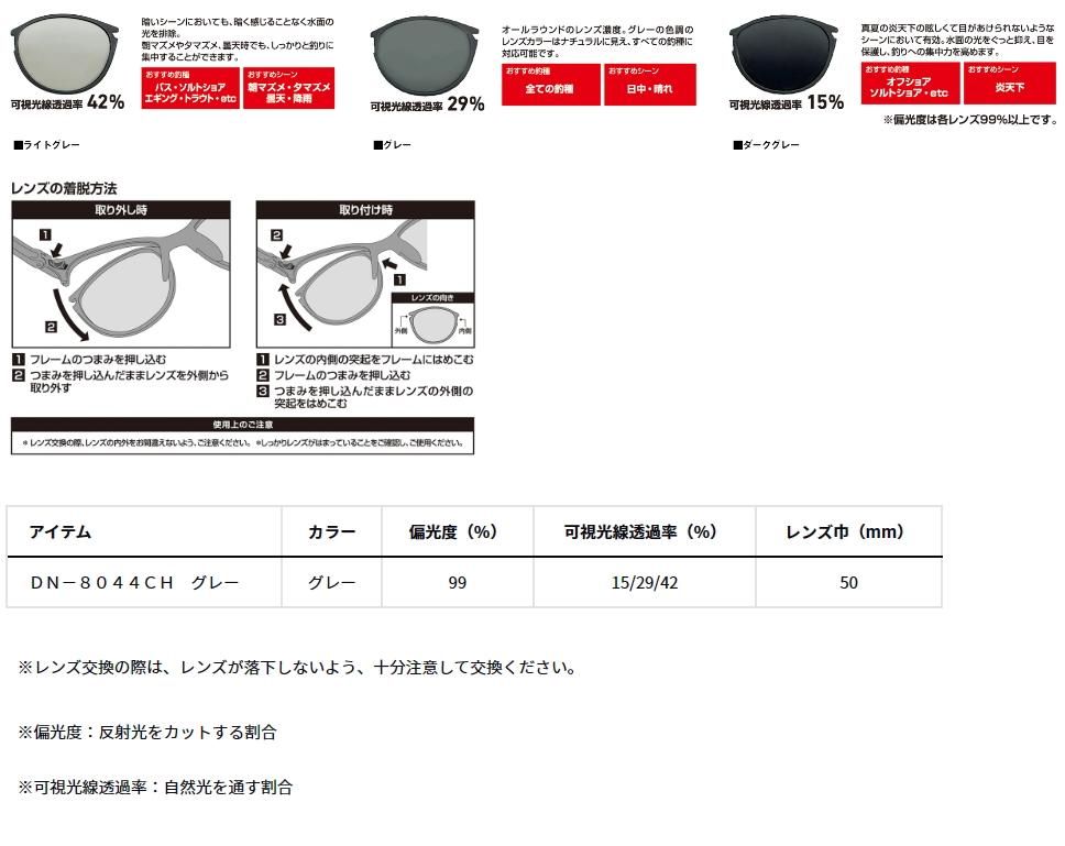 商品情報 ダイワ DAIWA グローブライド DN-8044CH レンズ交換式 トリアセテート 偏光グラス / 偏光 サングラス