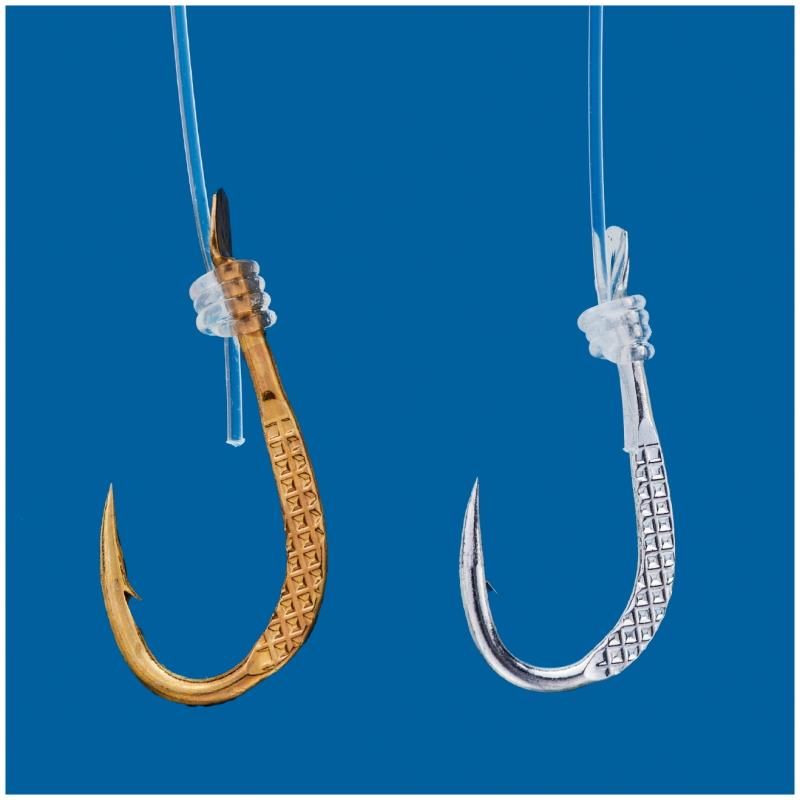 4本鈎仕様で危険な取り込み時のトラブルを軽減。下向きに出した枝が落し込む際に広がり、ベイトの乗りを誘発。またハリスが折れ曲がらずに結節強度の低下を押さえます。カラ鈎仕様とファイバー仕様を状況に応じて使い分けください。