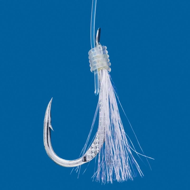 下向きに出した枝が落し込む際に広がり、ベイトの乗りを誘発。またハリスが折れ曲がらずに結節強度の低下を押さえます。長めのハリス・広めの枝間がターゲットの警戒心を解き口を使わせます。4本鈎仕様で広くとった枝間は、危険な取り込み時のトラブルを軽減します。カラ鈎仕様とファイバー仕様を状況に応じて使い分けください。