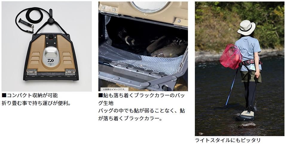 バッグに入れた魚を弱らせる事なく、釣り場の移動が可能。