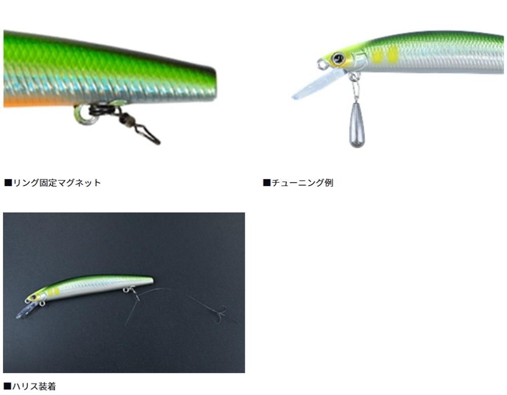 リップ裏にもアイが付いており、こちらはシンカーなどを装着し、チューン出来るようになっている。ルアー自体はSF(スローフローティング)モデルのため、テンションを抜くとゆっくりと浮き上がる。この性質を利用し、底で根掛りした時には、テンションを抜いて、根掛りを外すことが出来る。