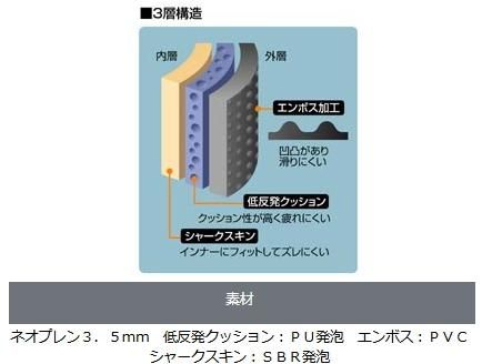 エンボス加工+低反発クッション+シャークスキンの3層構造でクッション性にすぐれ、ずれにくく滑りにくい仕様。