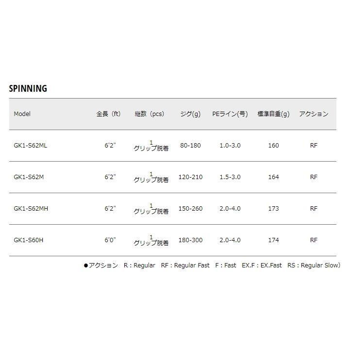船竿 メジャークラフト ジャイアントキリング 1G ジギングモデル GK1-S62M (スピニング) / majorcraft (SP) 【本店特別価格】